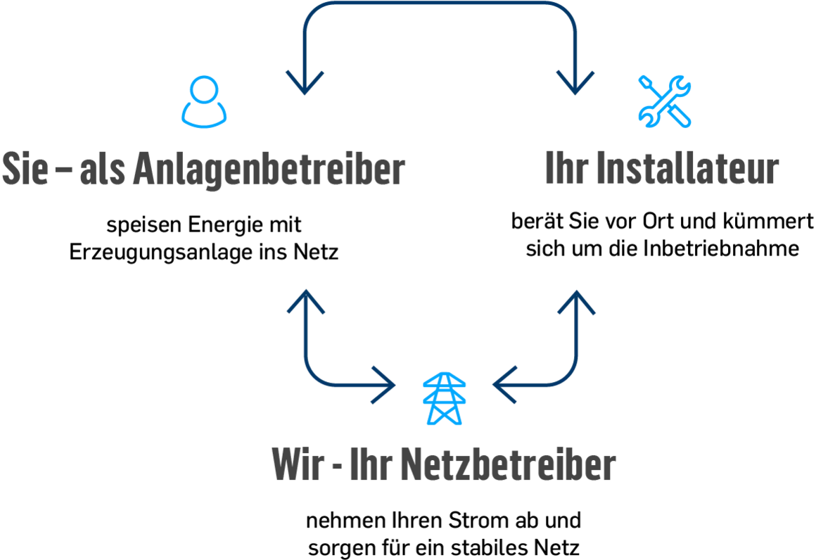 Sie möchten Strom selbst erzeugen – mittels einer Biogas-, Windkraft-, Wasserkraft – oder Photovoltaikanlage bzw. einem Blockheizkraftwerk? Wir skizzieren Ihnen hier den Weg von der Anmeldung bis zur Inbetriebnahme Ihrer Erzeugungsanlage. Und wir erklären Ihnen, wie Sie Ihren Strom in unser Netz einspeisen können.