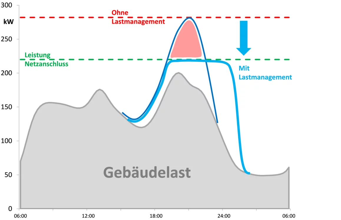 Die Alternative zum Netzausbau. Bei der Elektromobilität kann es insbesondere bei einer Vielzahl von Ladepunkten (z.B. Parkplätzen) schnell zu hohen Leistungsspitzen kommen, welche eine Verstärkung des Netzanschlusses oder eine kundeneigene Netzstation erforderlich machen. Neben den Kosten für den Netzanschluss können im Betrieb kostenintensive Lastspitzen vermieden werden.