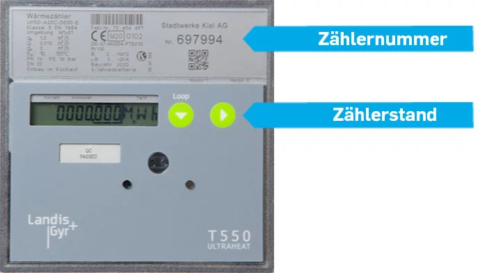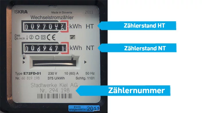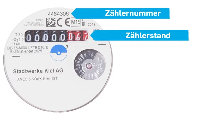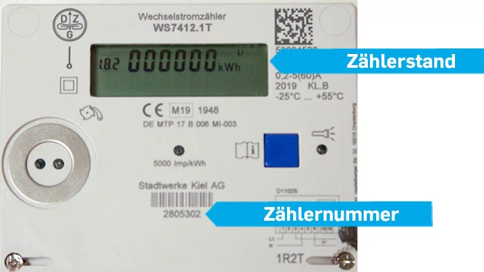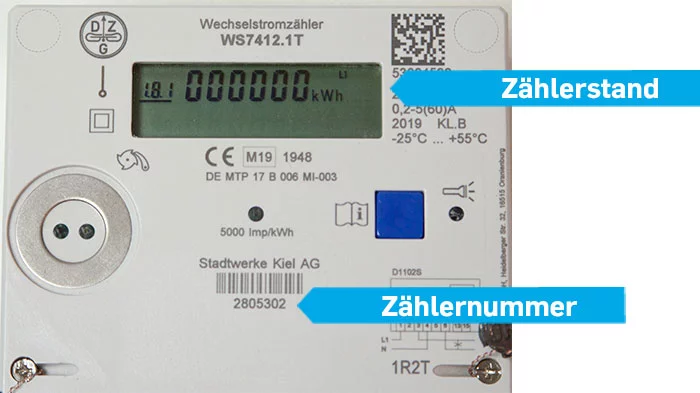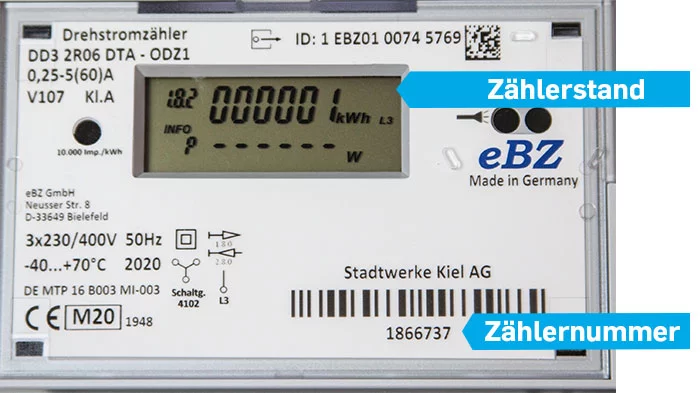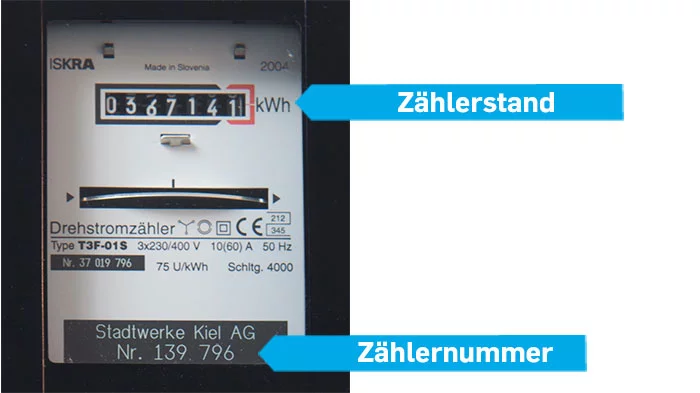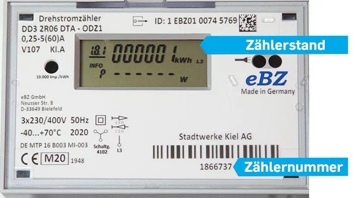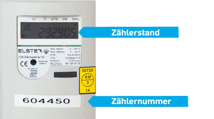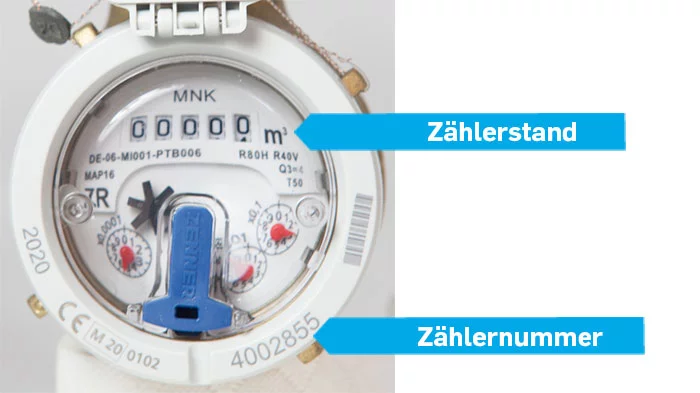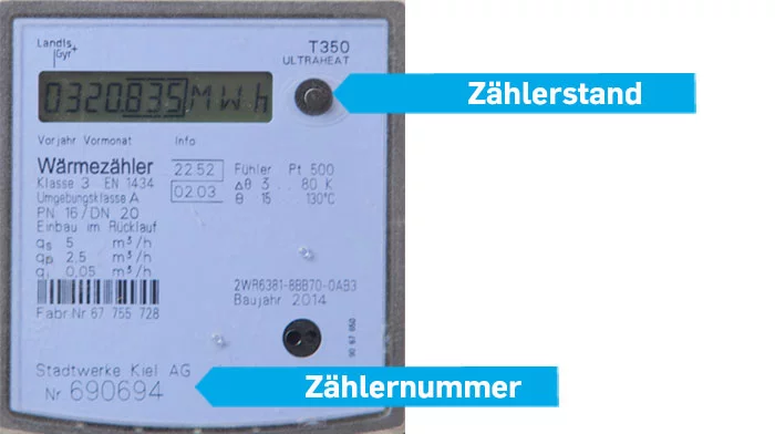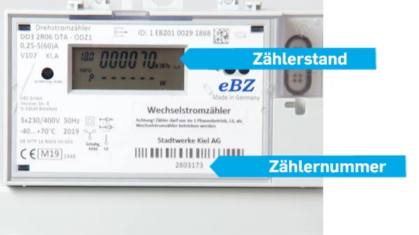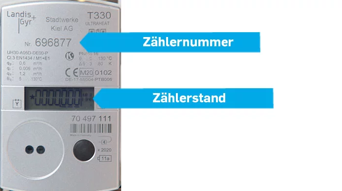 Die Zählernummer ist unterhalb der Eigentümerangabe ersichtlich.